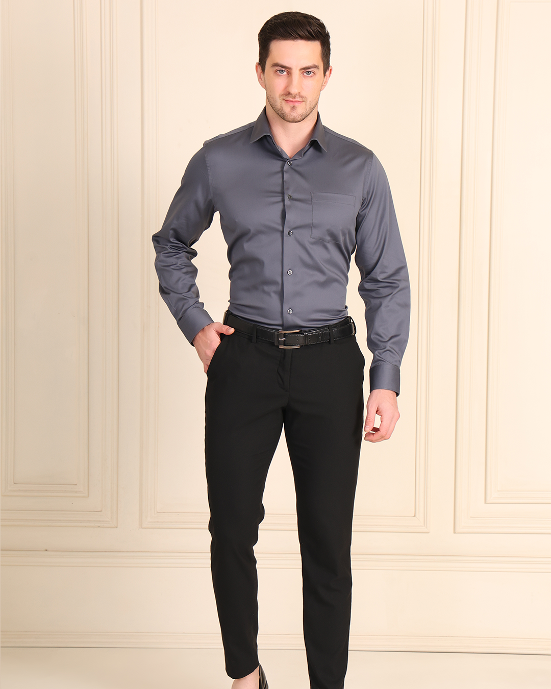 Dark Grey Non Iron Solid Shirt Satin