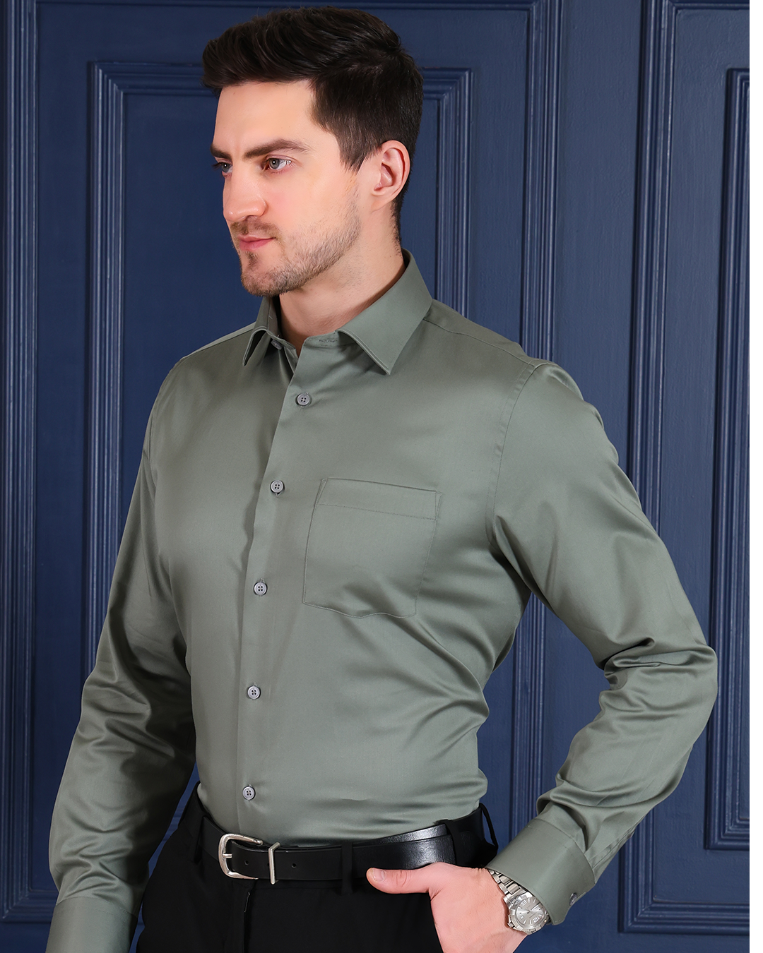 Sage Green Non Iron Solid Shirt Satin